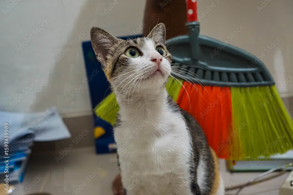 Cute Domestic Cat in a Natural Village Setting