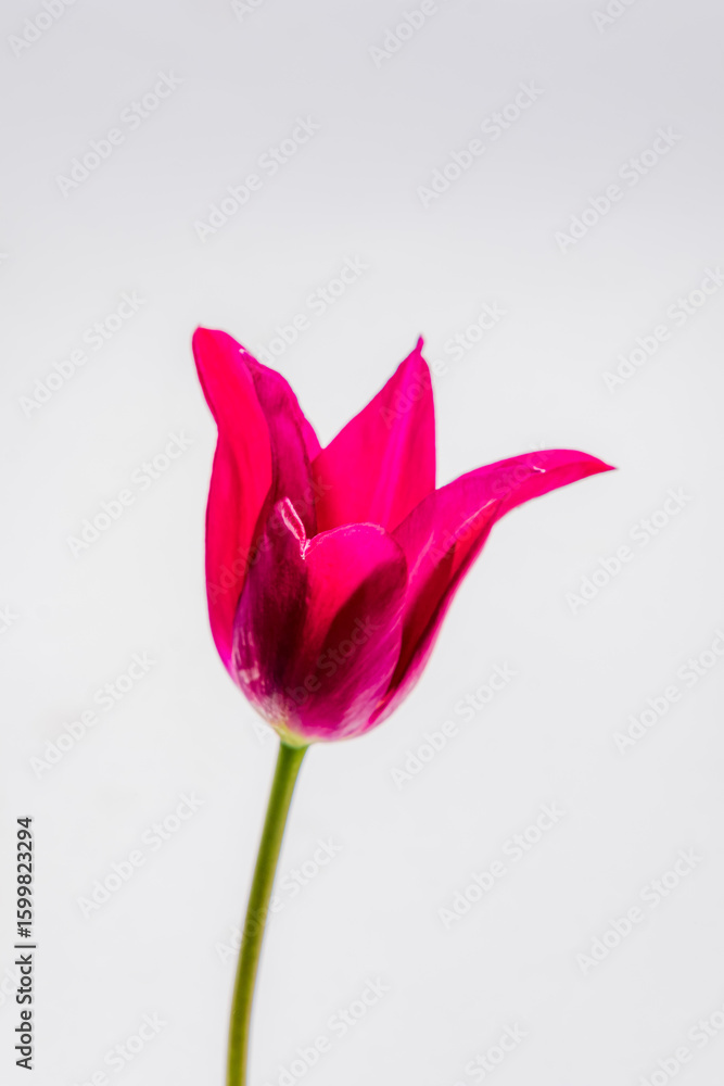 A vivid pink tulip stands out, embodying the beauty of spring with its graceful shape