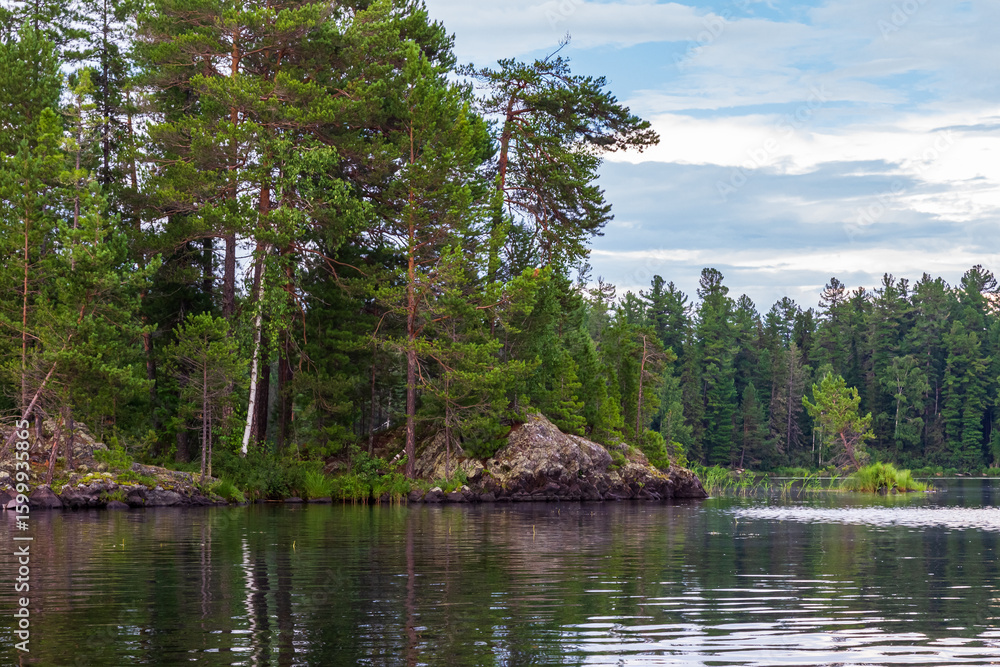 Landscapes of Lake Tagasuk. Islands on the lake. Siberia, Russia