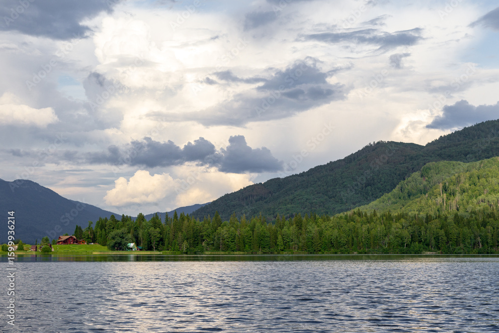 Landscapes of Lake Tagasuk. Islands on the lake. Siberia, Russia