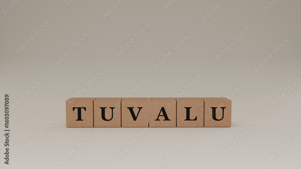 Tuvalu Wooden Block Letters, Isolated on a white background.