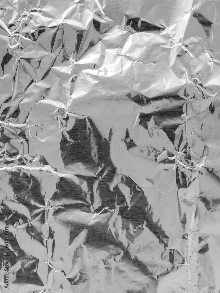 Wrinkled Shiny Silver Aluminum Foil Texture Background