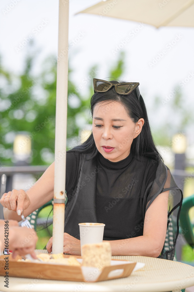 Folgende Fotos können Ihr Interesse wecken: korean, mann, verspätung, 50s, kaffee, kuchen, terrassen