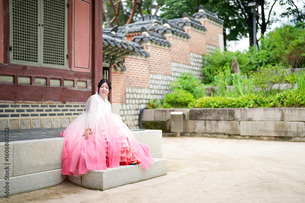 Folgende Fotos können Ihr Interesse wecken: korean, frau, 20s, charmant, rosa, gyeongbokgung, sit