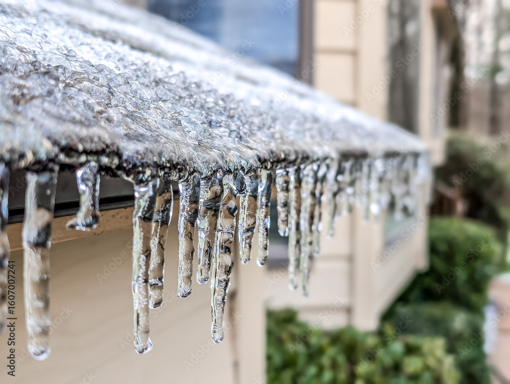 Icicles, a roof, night, darkness, crystal, fragility, a transparency