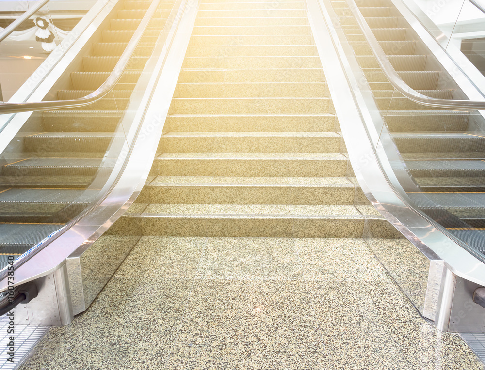 View of bottom part of escalator