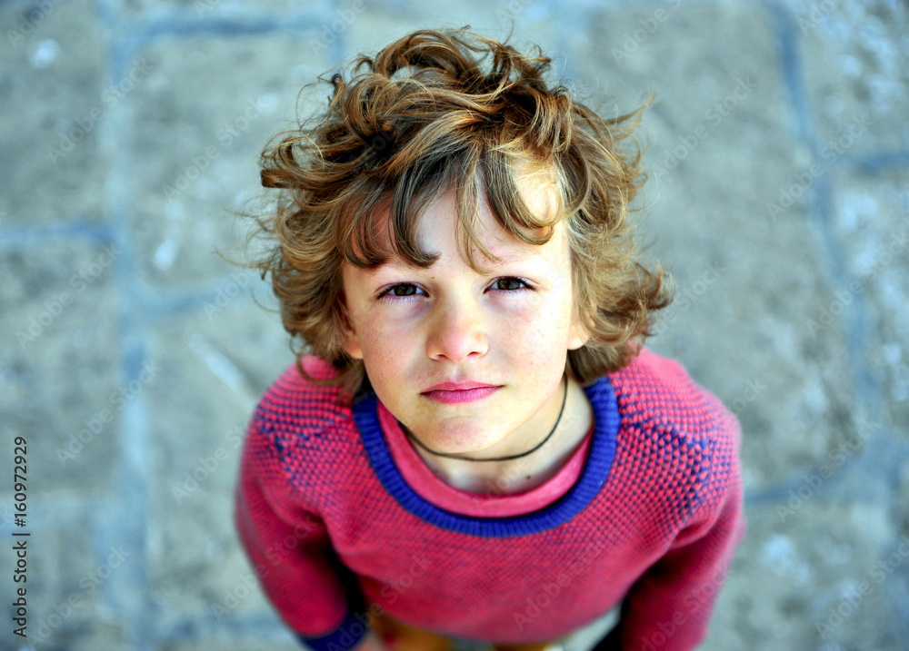 Portrait of a shaggy boy looking at camera