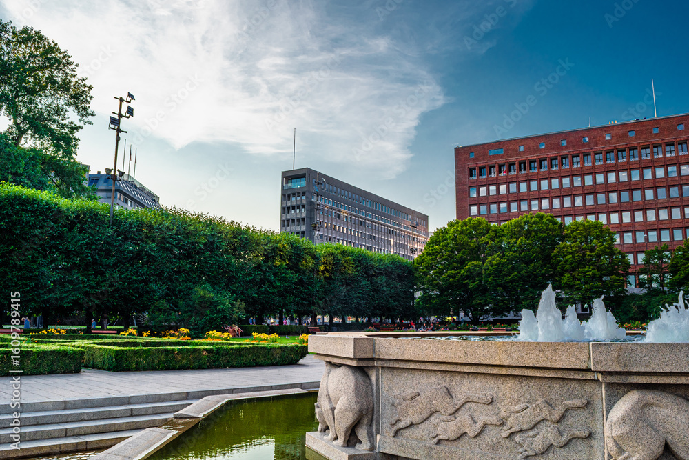 A spasso per il centro cittadino di Oslo in una serata di estate
