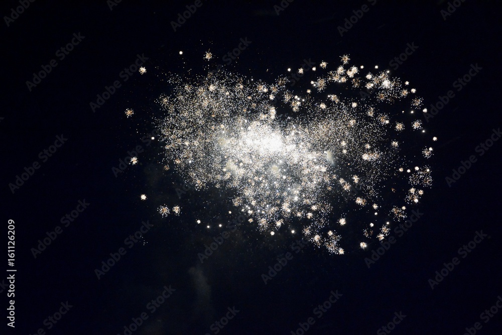 Großes herzförmiges Feuerwerk am schwarzen Nachthimmel