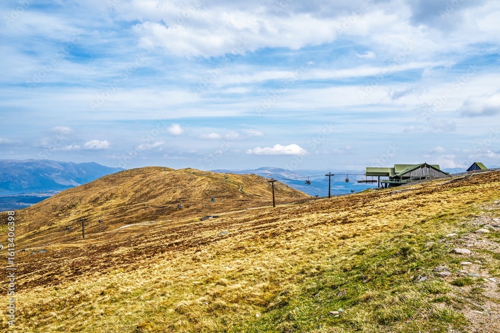 View of Nevis Range Mountains, Grampian Mountains, Fort William, Highland, Lochaber, Scotland, UK