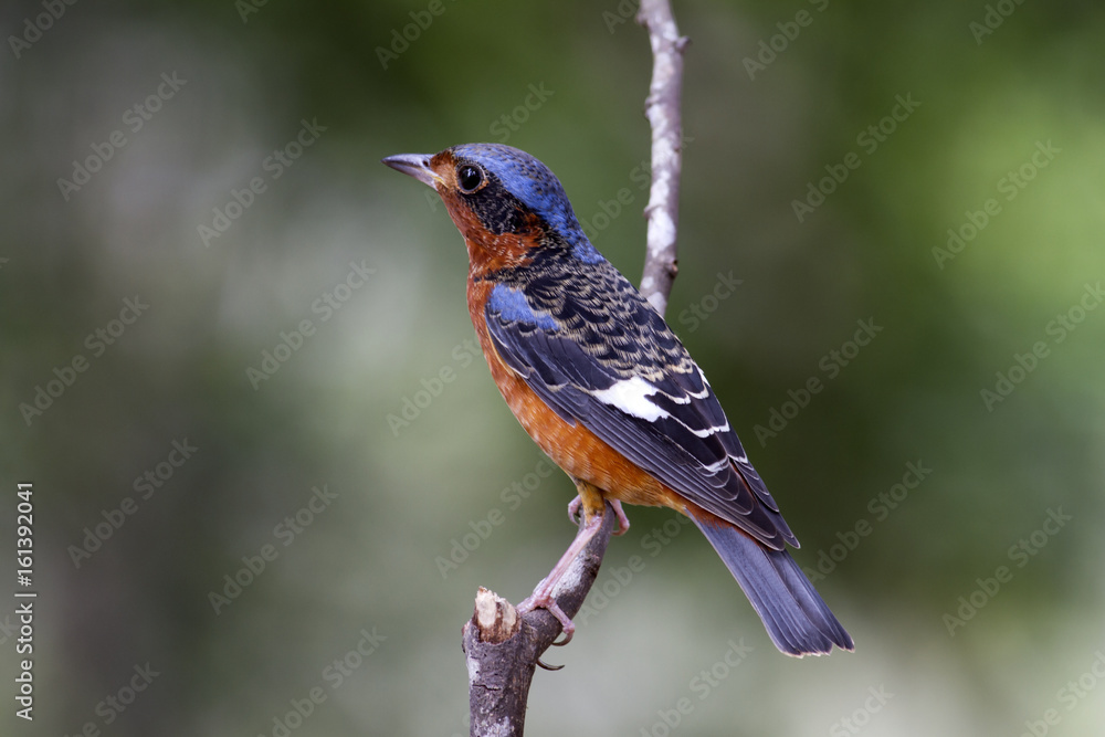 White throated rock thrush. This is a male passage migrant and winter visitor bird of Thailand. Its habitat are evergreen forest, wooded gardens, secondary.