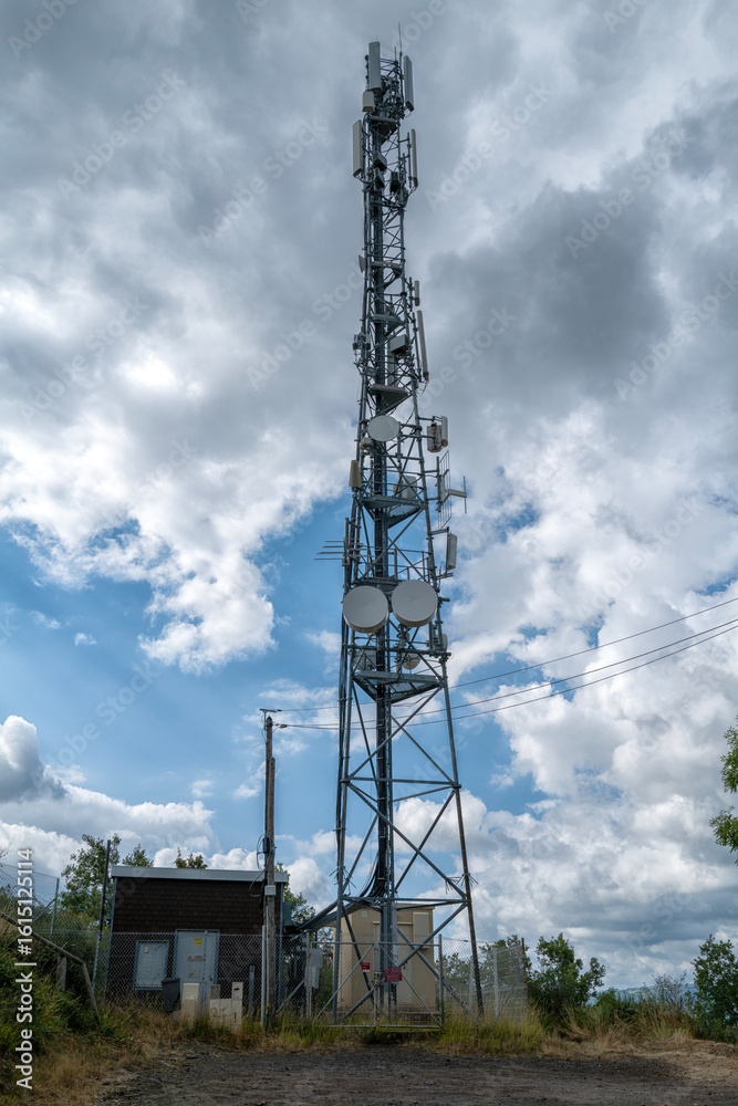 antennes réseau communication sur fond de ciel très nuageux