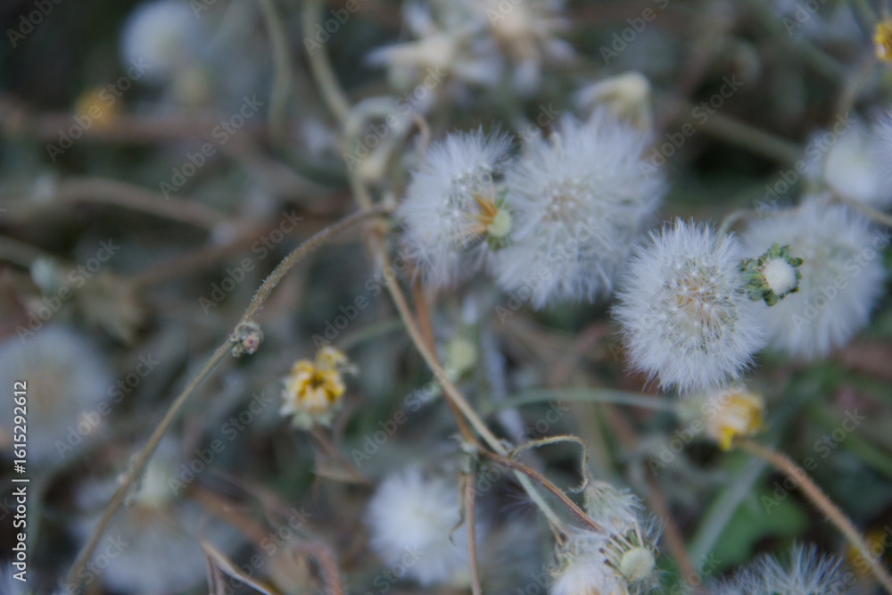 Dandelion flowers in the garden in winter. Selective focus. natural background