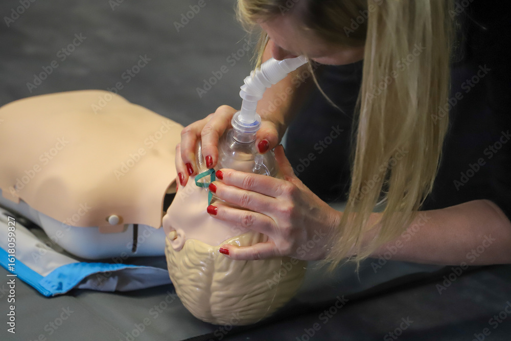 first aid course - company safety - cardiac massage - Basic Life Support. cardiac massage on children