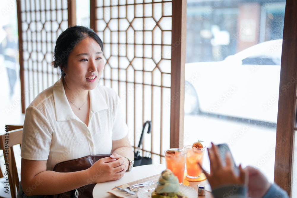Folgende Fotos können Ihr Interesse wecken: schick, café, fenster, tisch, korean, frau, 20s