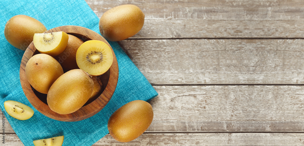Kiwi Gold Yellow Fruit Wooden Bowl Top View