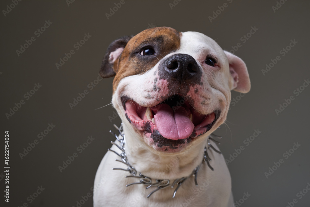 Happy dog with a playful expression in a bright indoor setting showcasing personality and charm