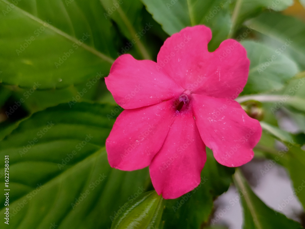 Bright Pink Wildflower Blooming with Green Leaves in Nature