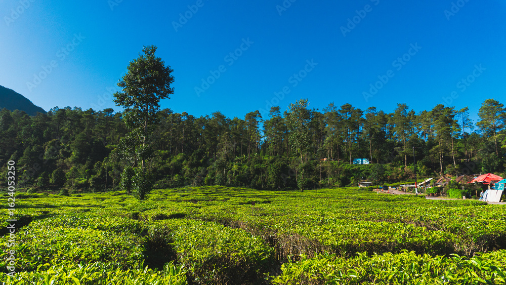 Beautiful scenic atmosphere with beautiful and freshness morning at Ciwidey Tea Plantation, West Java, Indonesia.