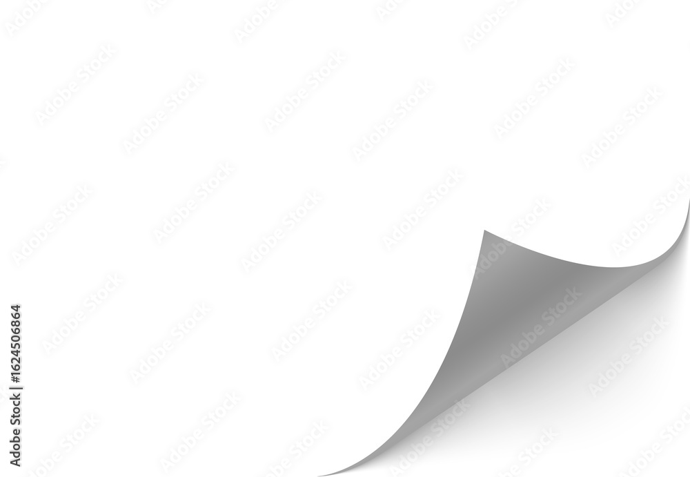 Lines, presentation, png, graphic. Folded paper. Curved corner paper with shadow. Png White page rotates bottom right on transparent background.
