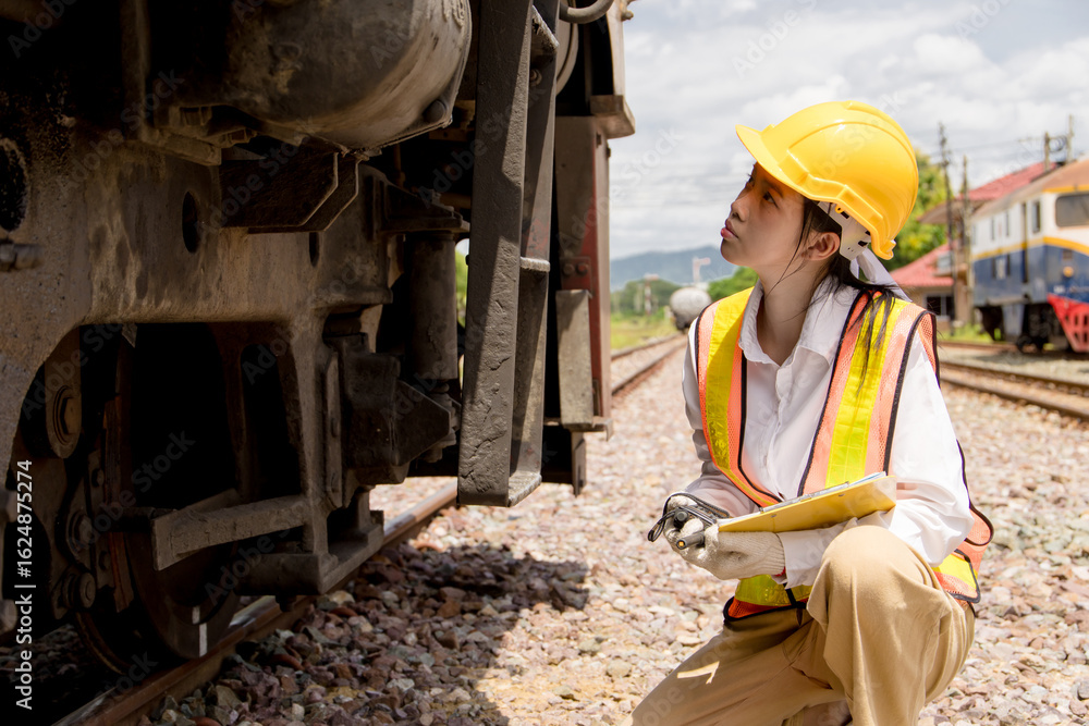 Asian young teen engineer worker work in Train station, Old locomotive service maintenance