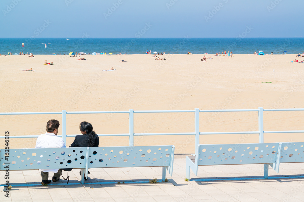 People relaxing on boulevard of seaside resort Scheveningen, Netherlands