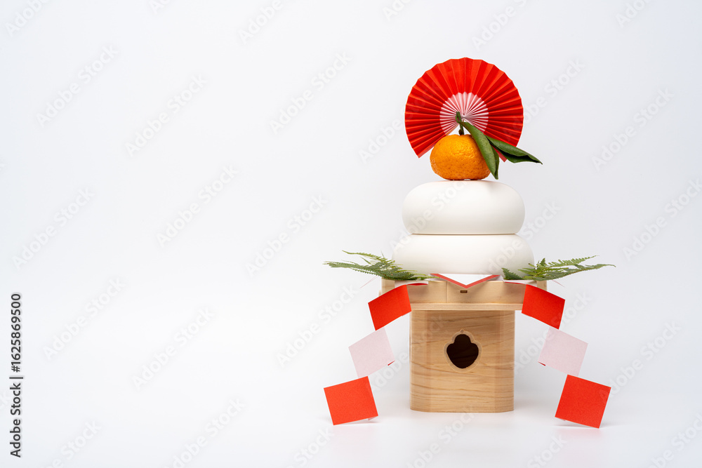 “鏡餅“を右側に配置した写真 白背景 三宝(台座)あり