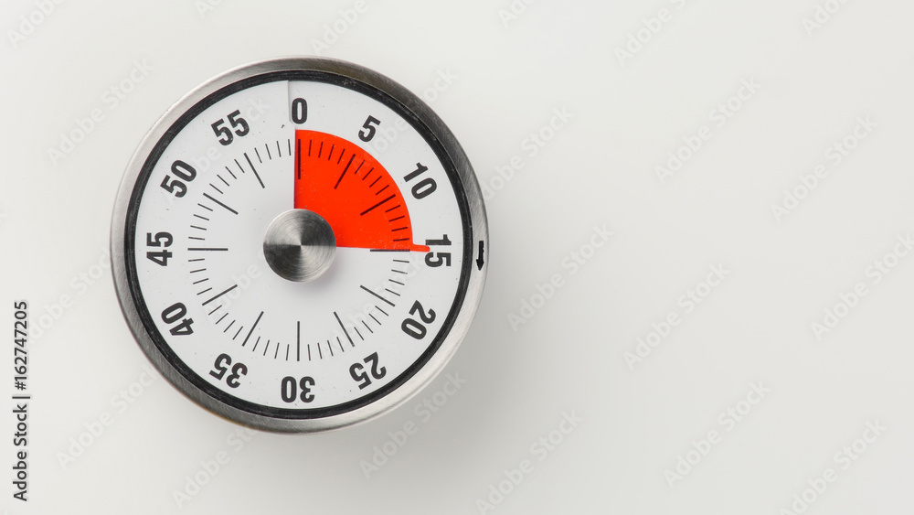 Vintage analog kitchen countdown timer, 15 minutes remaining