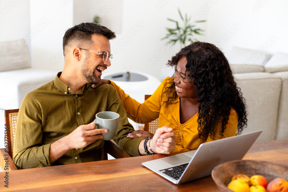 Young couple in love using laptop for online shopping