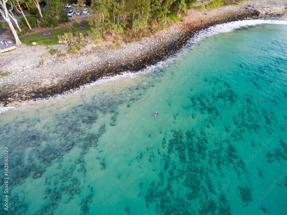 An aerial view of the beach at Noosa on a clear day on the Sunshine Coast in Australia