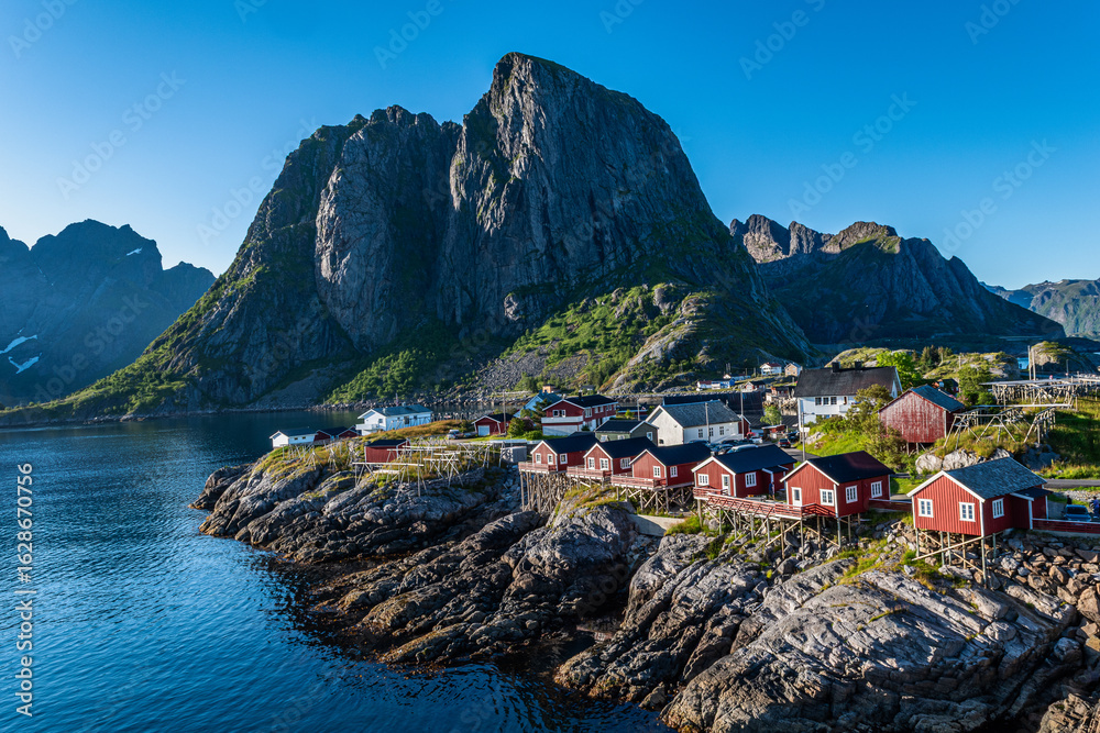 Hamnøy, un piccolo villaggio di pescatori nel comune di Moskenes, nella contea di Nordland, in Norvegia.