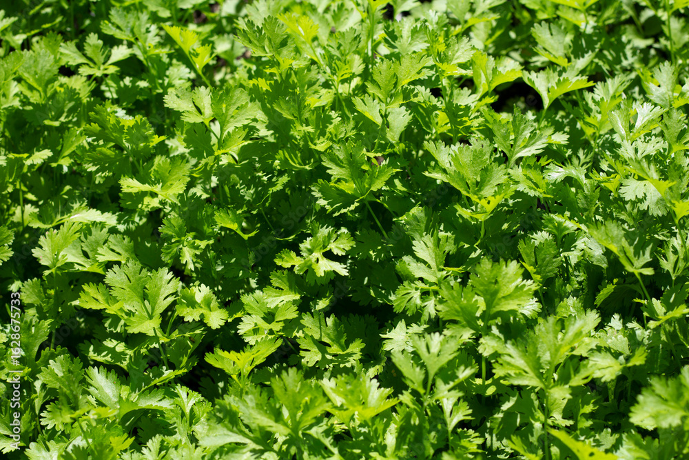 Cilantro or Coriander Plant Leaf Growing in a Green Garden on a Sunny Day