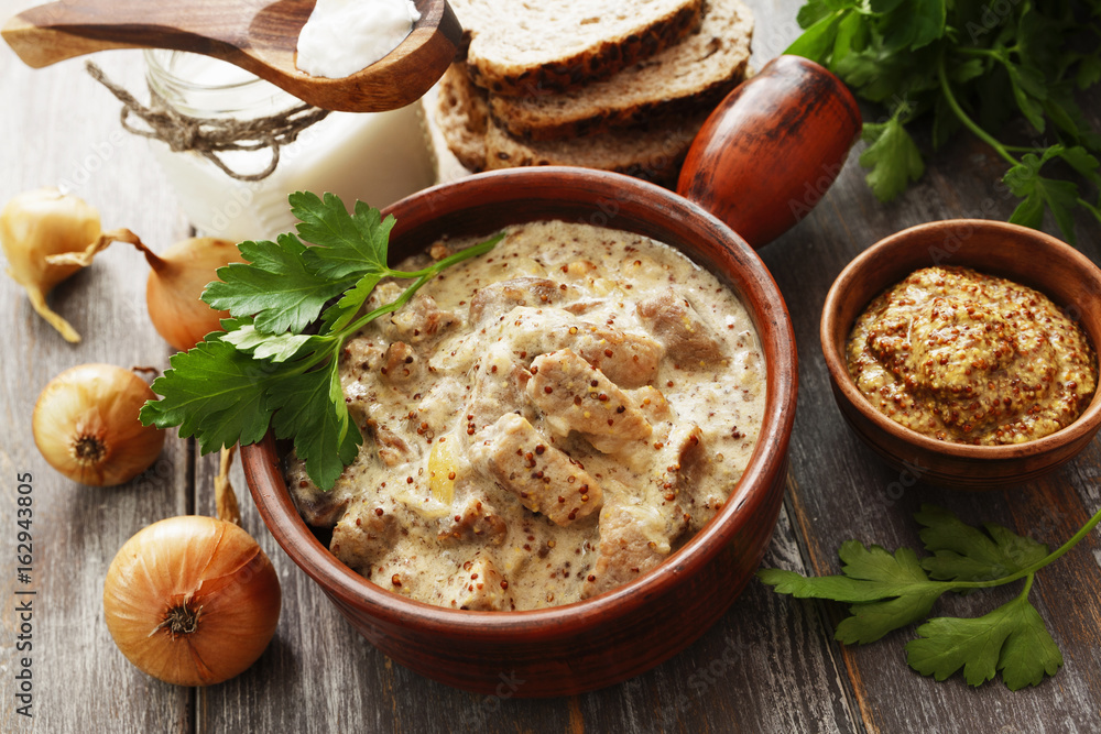 Stewed pork with mustard sauce