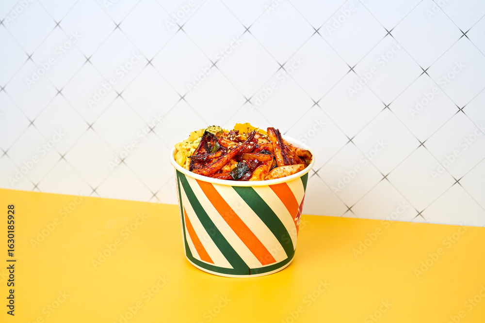 오징어 덮밥이 컵에 담겨 있는, 컵밥의 모습