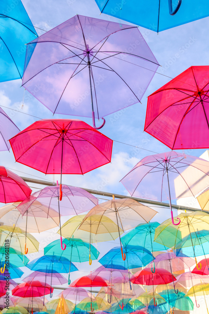 夏の晴れた日の夕空を覆うカラフルなアンブレラスカイ