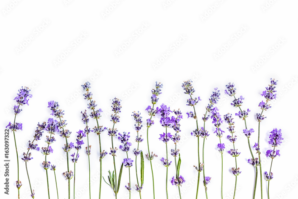Fresh lavender flowers on a white background. Lavender flowers mock up. Copy space.