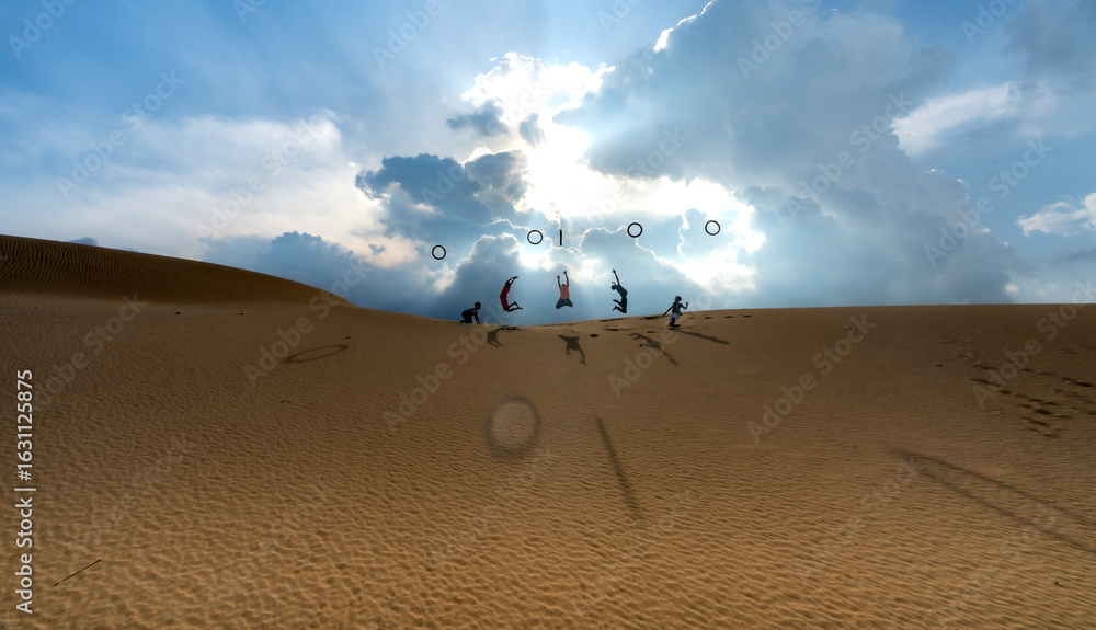 Phan Rang City, Vietnam - June 20, 2025: Children on the sand dunes in Phan Rang, Vietnam
