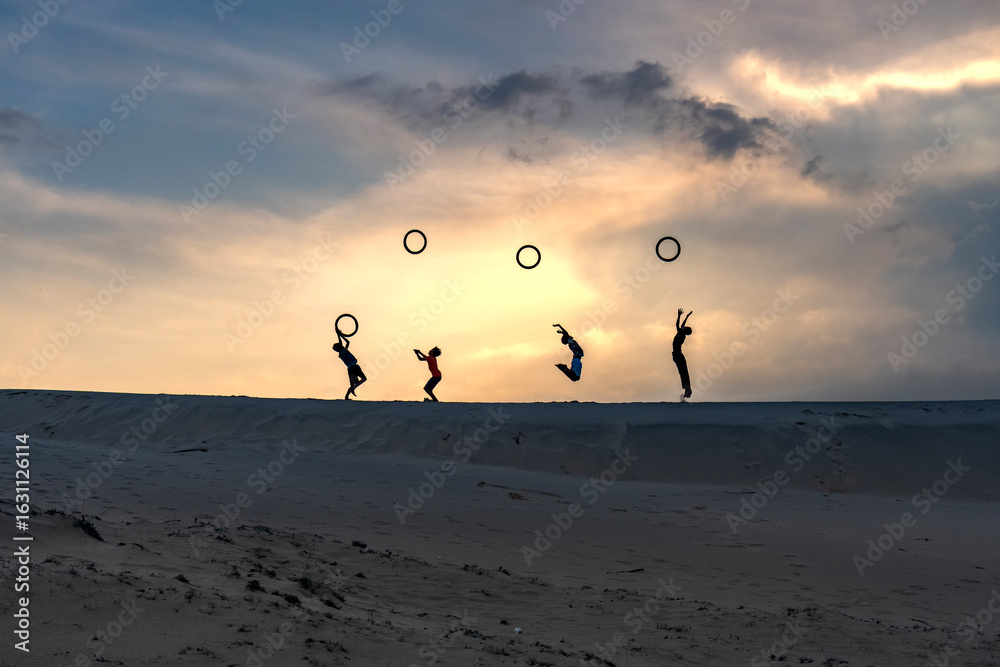 Phan Rang City, Vietnam - June 20, 2025: Children on the sand dunes in Phan Rang, Vietnam