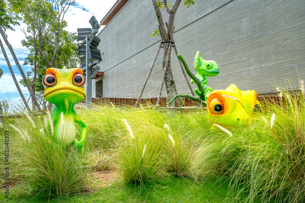 NovaWorld Phan Thiet, Binh Thuan Province, Vietnam - June 30, 2025: green grass with toy for interior or exterior decoration. at NovaWorld Phan Thiet Bikini Beach Park at NovaWorld Phan Thiet