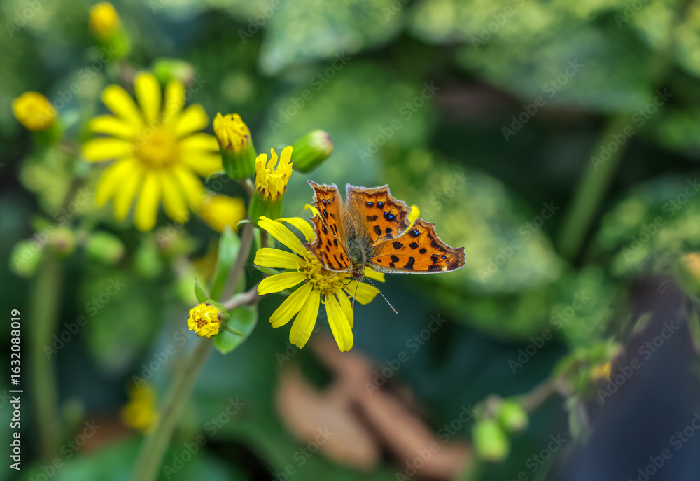 Polygonia c-aureum on leopard plant. Polygonia c-aureum, the Asian comma, is a middle-size butterfly found in Asia.