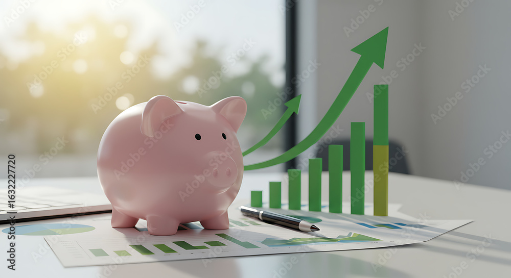 Financial Growth and Investment Success Concept with Piggy Bank and Upward Graph Chart