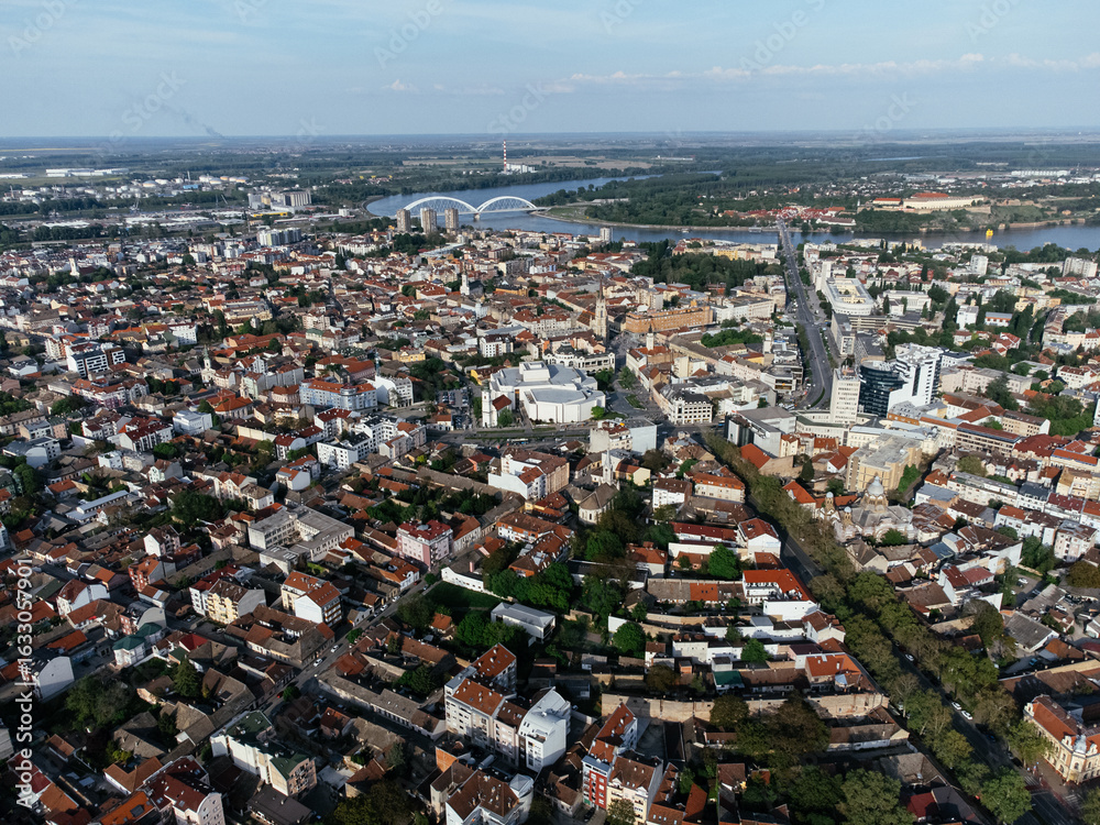 Drone flight above the Novi Sad city, Serbia.