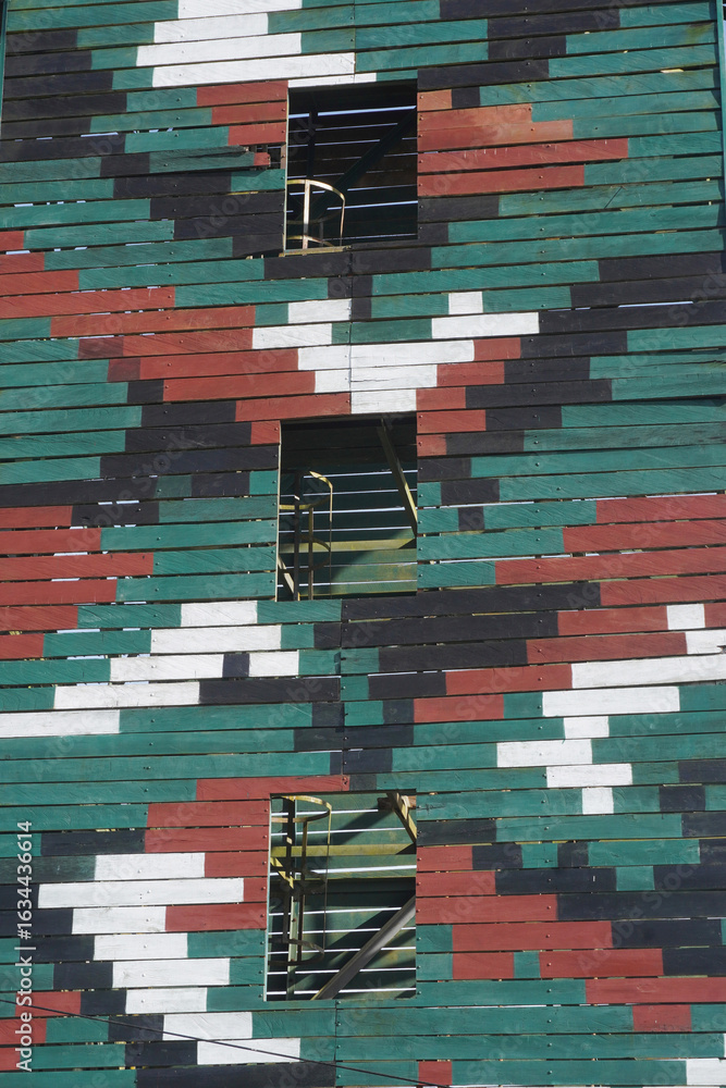 Military rustic wooden wall with tribal pattern creating a unique texture for backgrounds or overlays