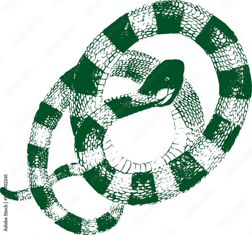 abstract illustration snake silhouette. Illustration of shape as an example of snake design. Diseño abstracto de serpiente en color blanco, negro, verde y guinda. PNG. VEXTOREN. JPG