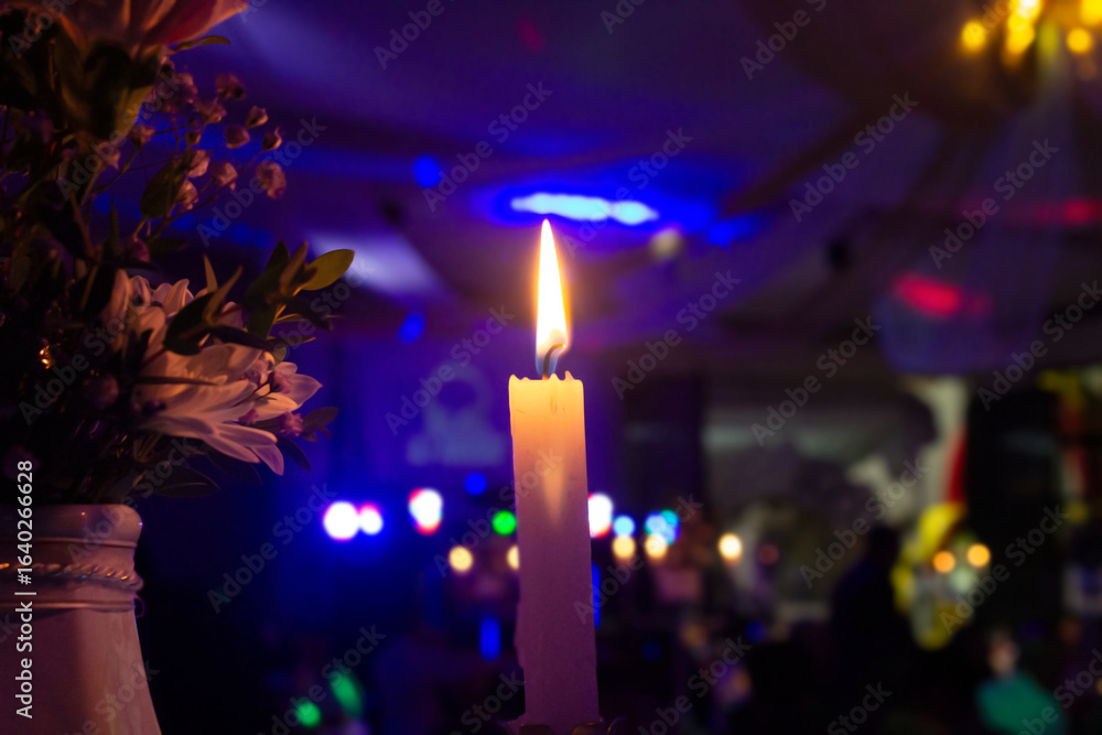 CÁLIDA VELA ALUMBRANDO EN SALÓN AZUL CON LUCES