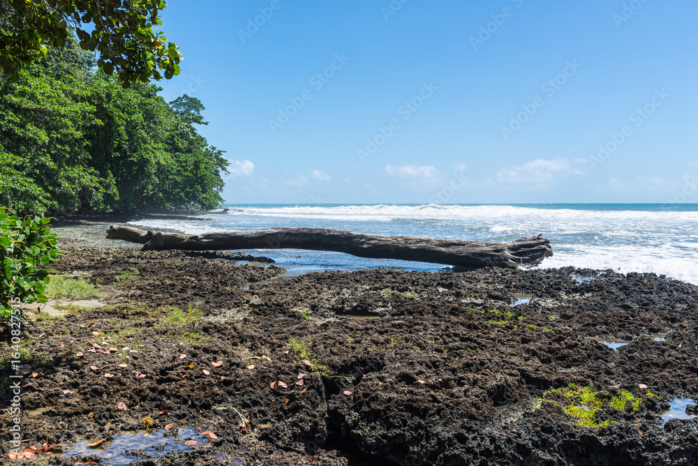 Seascape with tree log on the wild Caribbean coast of Costa Rica