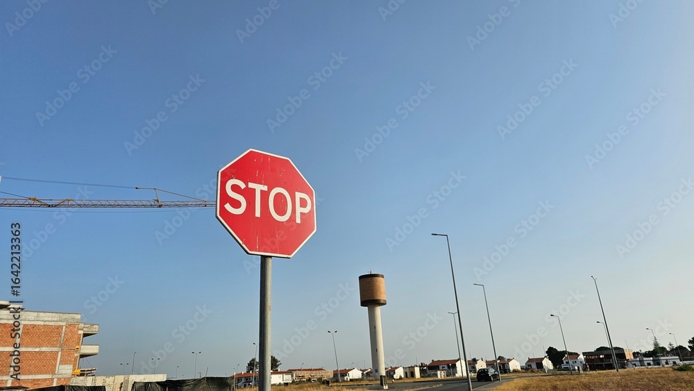 Close-Up of STOP Sign with Clear Blue Sky Background