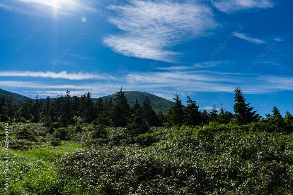 夏の快晴の青森の八甲田山の登山道