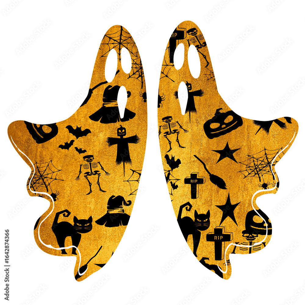 Halloween clipart spooky illustrations of pumpkins, ghosts, bats, witches, haunted house, skeletons, creepy decorations, vector design, scary cartoon elements for autumn holiday party clipping mask