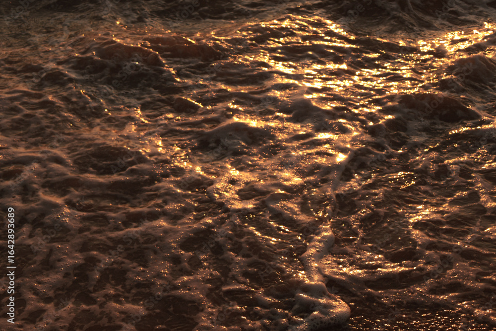 Ocean foam texture in a Vietnamese beach at sunrise, Da Nang